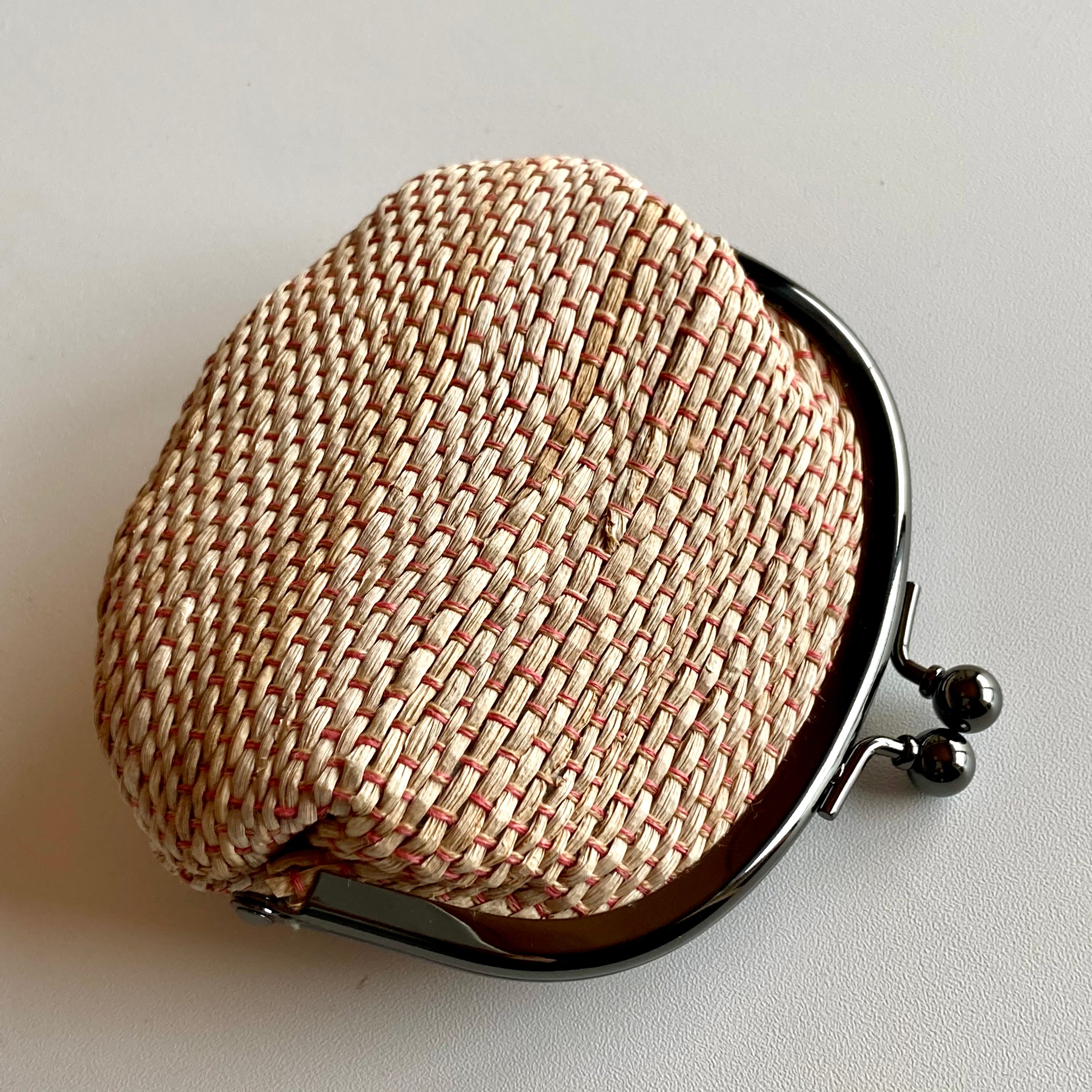 手のひらサイズで、バッグの中にも収まりやすいサイズです。口金が大きく開くので、中身が探しやすいです。